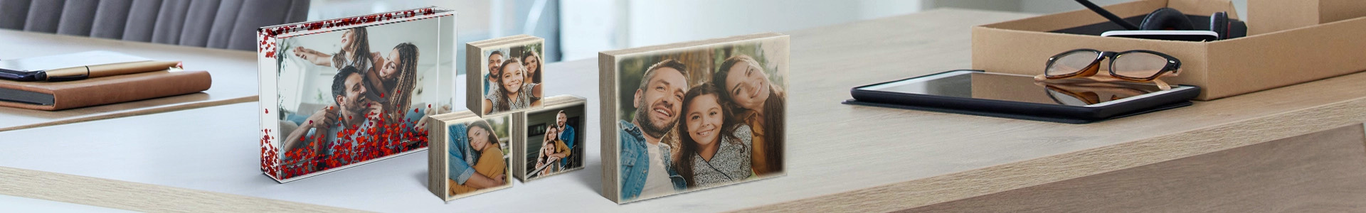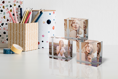 Egal ob Acrylglas oder Holz – Fotoblöcke setzen deine Lieblingsfotos stilvoll in Szene. Perfekt für Regal, Sideboard oder Schreibtisch – ein echter Hingucker!