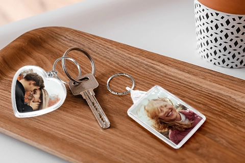 Unsere Foto-Schlüsselanhänger aus Acrylglas gibt es wahlweise in 5 × 5 cm (herzförmig) oder 5 × 4 cm (rechteckig). Das klare Acrylglas hat sich bewährt: Es schützt dein Foto dauerhaft, während die Farben lebendig bleiben. Auch nach Monaten in der Tasche oder am Schlüsselbund sieht das Bild noch genauso aus wie am ersten Tag.