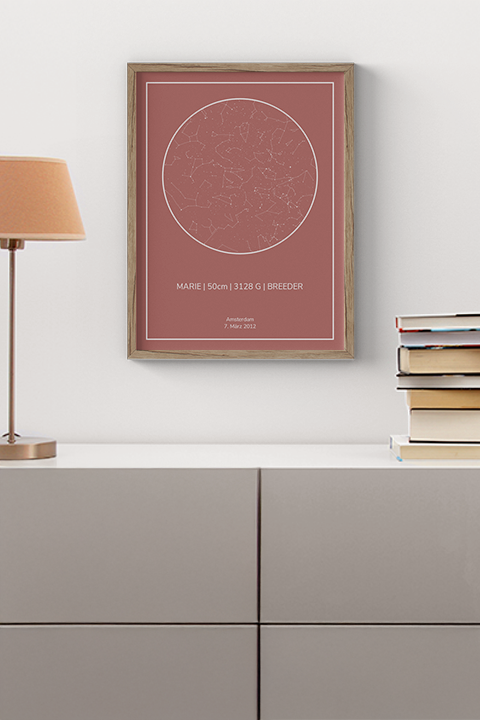 Der personalisierte Sternenhimmel ist viel mehr als ein Dekoelement – er ist eine emotionale Momentaufnahme. Ob der erste Kuss, die Geburt deines Kindes oder ein magischer Abend – du bestimmst Ort, Datum und Uhrzeit, und wir berechnen das Himmelsbild exakt so, wie es zu diesem Zeitpunkt war. Dein Sternenbild wird auf edlem Fotoboard in bester Druckqualität umgesetzt – wahlweise mit individueller Widmung und in deiner Lieblingsfarbe. Durch den federleichten, 5 mm starken Hartschaumträger lässt sich das Kunstwerk einfach anbringen und flexibel platzieren. Das matte Finish verleiht dem Bild eine elegante Tiefe – perfekt für alle, die Design und Gefühl vereinen möchten. So entsteht ein Erinnerungsstück, das so einzigartig ist wie dein Moment selbst.