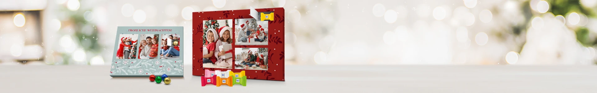 Entdecke die Vielfalt der Foto-Adventskalender bei Lidl-Foto. Wähle zwischen klassischer Schokolade oder Ritter-Sport-Schokolade und gestalte deinen Weihnachtskalender ganz nach deinen Wünschen. Egal, für welche Schokofüllung du dich entscheidest, jeder Kalender bietet dir die Möglichkeit, ihn individuell mit denen Fotos und Wunschdesigns zu gestalten. Da wird es besonders schwierig, nicht schon vorher alle Türchen zu öffnen.