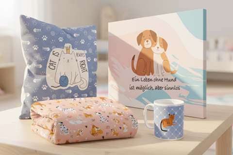 Entdecke die Haustierwelt bei Lidl-Fotos: Gestalte liebevoll personalisierte Produkte für deinen treuen Vierbeiner. Ob Futternapf mit dem Namen deines Hundes, eine hochwertige Leckerlidose mit Foto oder eine rutschfeste Fußmatte in Pfotenform – mit unserer Kollektion wird dein Haustier-Zubehör zum individuellen Highlight. Unsere hochwertigen Materialien und brillanten Drucke sorgen dafür, dass dein Herzblatt nicht nur versorgt, sondern auch stilvoll präsentiert wird. Nutze jetzt unsere Auswahl an Designs und Accessoires wie Leinwand, Tasse, Decke oder Fußmatte – alles mit deinem eigenen Foto und Namen gestaltbar.