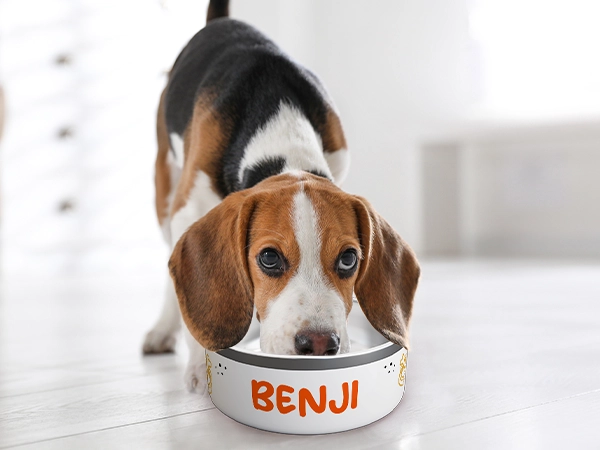 Wähle eines aus unseren liebevoll gestalteten Designs und füge ganz einfach den Namen deines Haustiers hinzu. Dein individuelles Layout ist mit nur wenigen Klicks erstellt und benötigt keinerlei Technik- oder Designkenntnisse. Als Ergebnis erhältst du ein praktisches und zugleich wunderschönes Unikat für dich und dein Haustier. In wenigen Tagen ist dein personalisierter Hundenapf auf dem Weg zu dir.